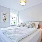 The apartment includes a separate toilet, a shower, and a washing machine for your comfort. A hairdryer are also included in the bathroom.